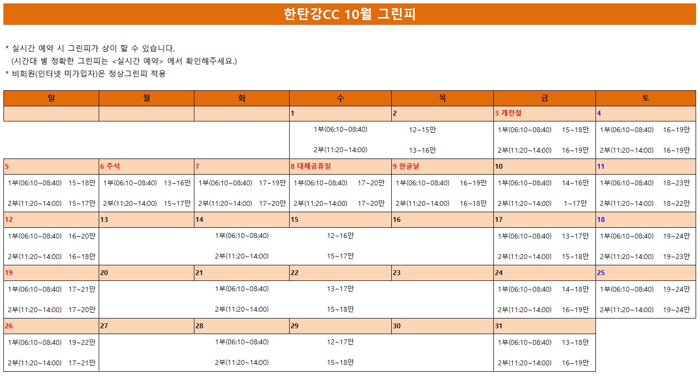 한탄강CC 10/1~10/31 그린피 안내