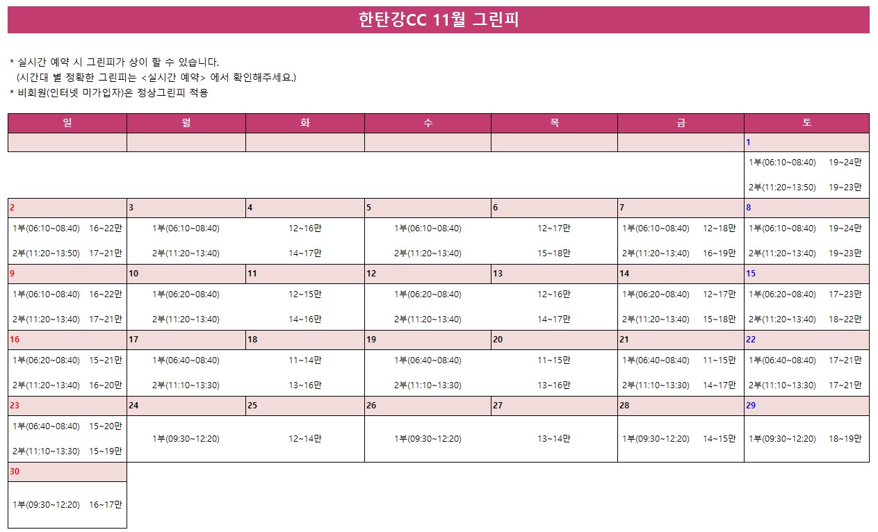 한탄강CC 11/1~11/30 그린피 안내